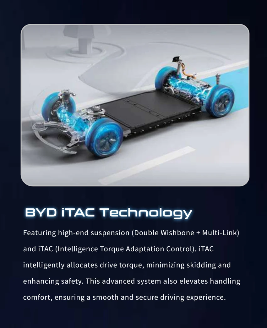 Menampilkan suspensi kelas atas (Double Wishbone + Multi-Link) dan iTAC (Intelligence Torque Adaptation Control). iTAC secara cerdas mengalokasikan torsi penggerak, meminimalkan penyaradan dan meningkatkan keselamatan. Sistem canggih ini juga meningkatkan kenyamanan penanganan, memastikan pengalaman minum yang lancar dan aman.